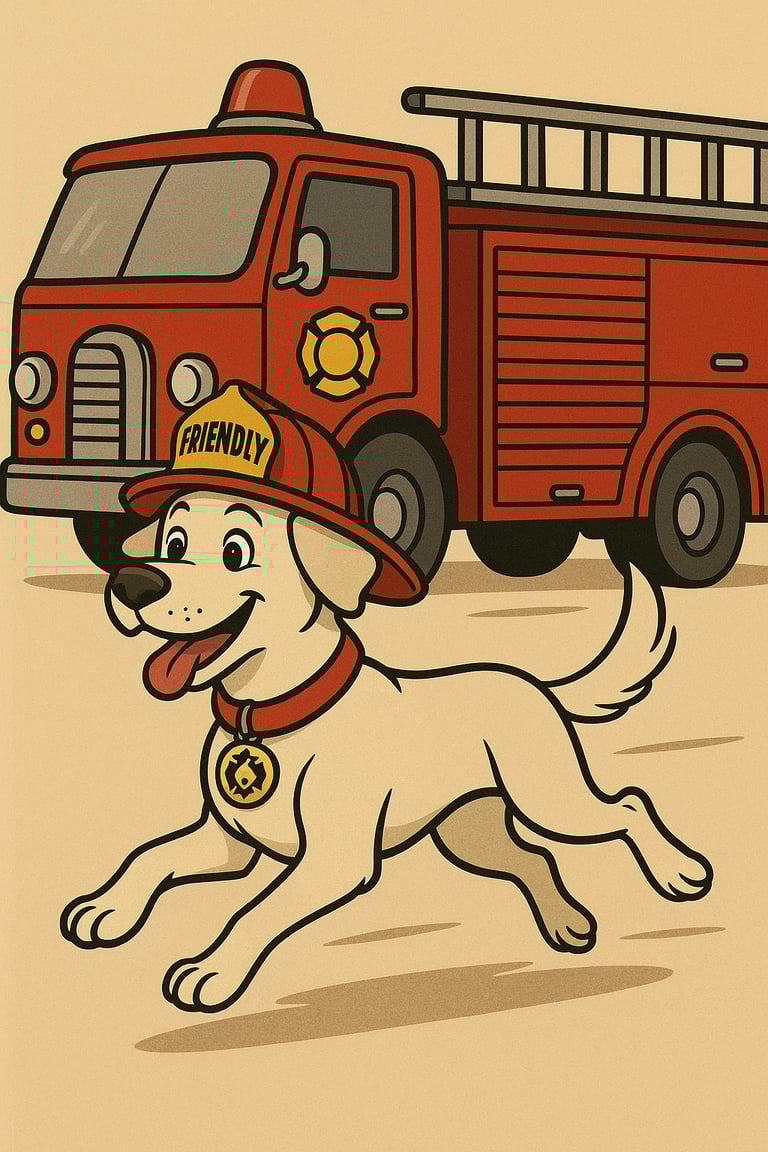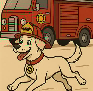 At the Friendship Fire Station in Winchester, Chief Frank and his crew—Andy, Billy, Camilly, Latisha, and José—are enjoying breakfast when the fire alarm sends them racing to a nearby house fire. After extinguishing the blaze, the firefighters search the home and discover not a trapped person, but a frightened little dog covered in soot. The pup has no family, so the crew takes him to the vet, who declares him healthy. That evening, gathered back at the station, the firefighters gave him a new name—Friendly—and a new forever home among their team.